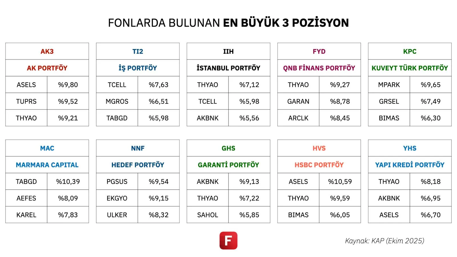 Yukarıda paylaştığımız fonların eylül ayı portföy dağılım raporlarında, ağırlığı en yüksek 3 hisse pozisyonları aşağıdaki gibi oldu.
