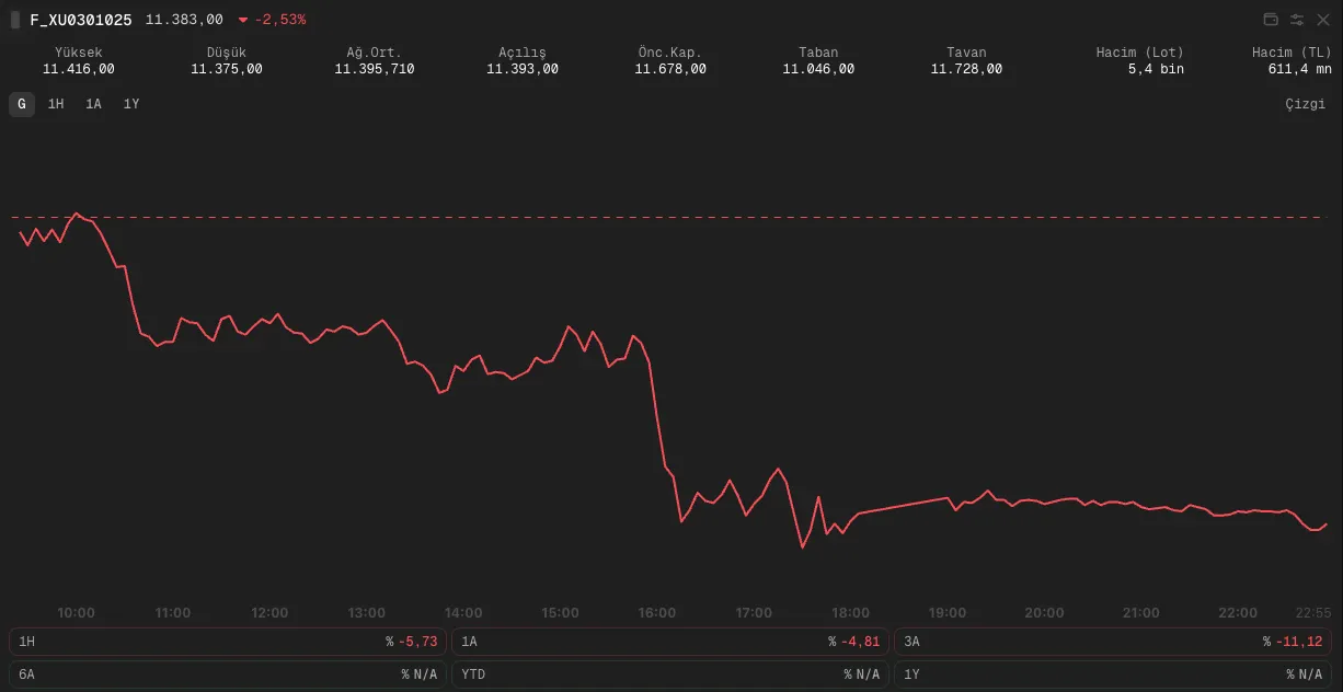 Borsa İstanbul’da dün özellikle öğleden sonra başlayan sert satışları takip ettik. Endeks günü %2,27 düşüşle 10.316 puandan kapattı. Bankacılıkta kayıplar %4’ü aşarken, iletişim endeksi %6,5 geriledi. BIST 100 endeksinde meydana gelen yüzde 2 değişim sebebiyle pay piyasasında yukarı adım kuralı devreye girdi. BIST-100’de işlem hacmi 117,2 milyar TL olarak gerçekleşti. Turizm sektörü ise tek pozitif ayrışarak sektör olarak %2,3 yükseldi.