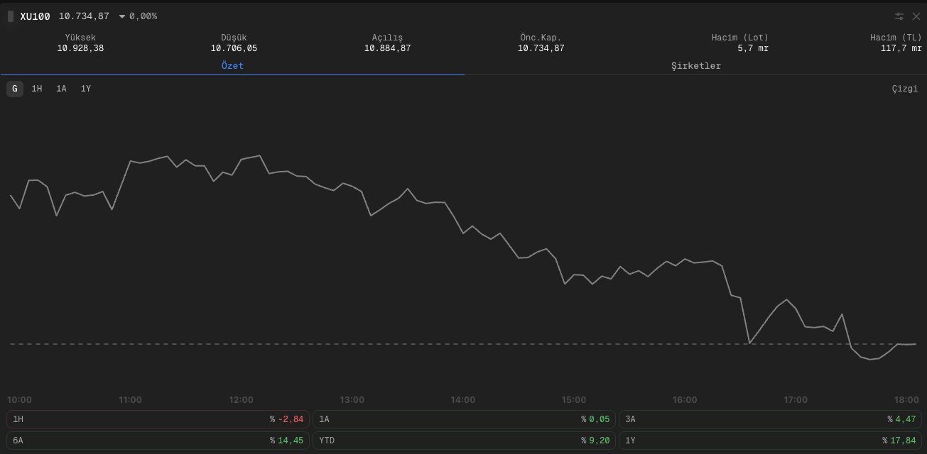 Borsa İstanbul yeni haftaya da zayıf başladı. BIST 100 endeksi günü %1,14 kayıpla 10.734,87 seviyesinde tamamlarken, işlem hacmi 117,7 milyar TL oldu. Bankacılık endeksi yüzde 2,5 gerilerken, holding endeksi sınırlı bir artış kaydetti. Günün ana gündeminde ABD Yüksek Mahkemesi’nin Halkbank’ın temyiz başvurusunu reddetmesi vardı. Reuters’ta yer alan haberin ardından Halkbank hisseleri %10 değer kaybederken, satışlar genele yayıldı. Banka yaptığı açıklamada, kararın hukuki sürecin sona erdiği anlamına gelmediğini vurguladı. Bu gelişme, endeksin günün ikinci yarısında satış baskısıyla karşılaşmasına neden oldu.