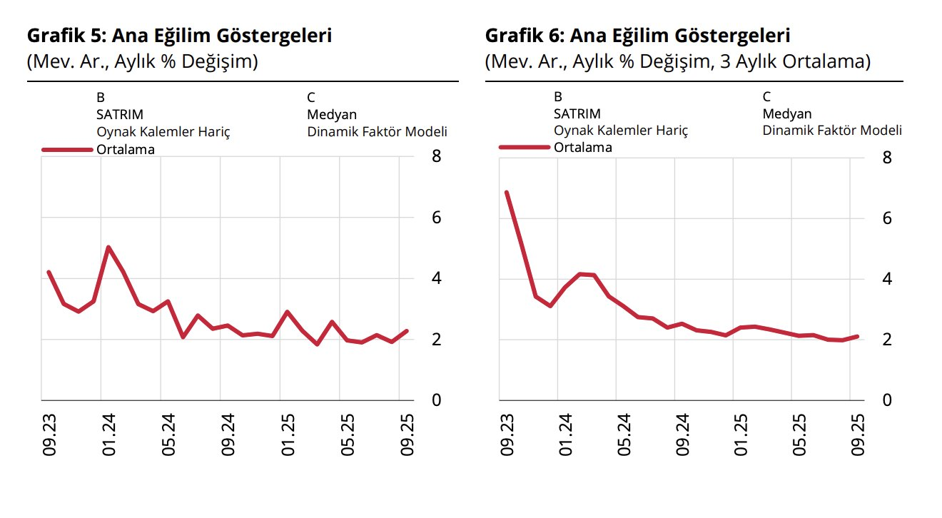 📈 TÜİK’in eylül ayına ilişkin özel kapsamlı TÜFE göstergelerine göre, mevsim etkilerinden arındırılmış genel endeks aylık bazda yüzde 2,71 arttı. Böylece bir önceki aya göre enflasyon eğilimi bir miktar güçlendi. İşlenmemiş gıda, enerji, alkollü içkiler, tütün ve altın hariç TÜFE yüzde 2,56 yükselirken, enerji ve gıda dışı mallarda artış oranı yüzde 1,48 oldu. En güçlü fiyat artışı gıda ve alkolsüz içeceklerde yüzde 4,79 ile gerçekleşti. Enerjideki artış yüzde 1,24, hizmetlerde ise yüzde 2,84 seviyesinde kaydedildi. Bu görünüm, eylülde enflasyonun gıda ve hizmet kalemlerinde yoğunlaştığını gösteriyor.