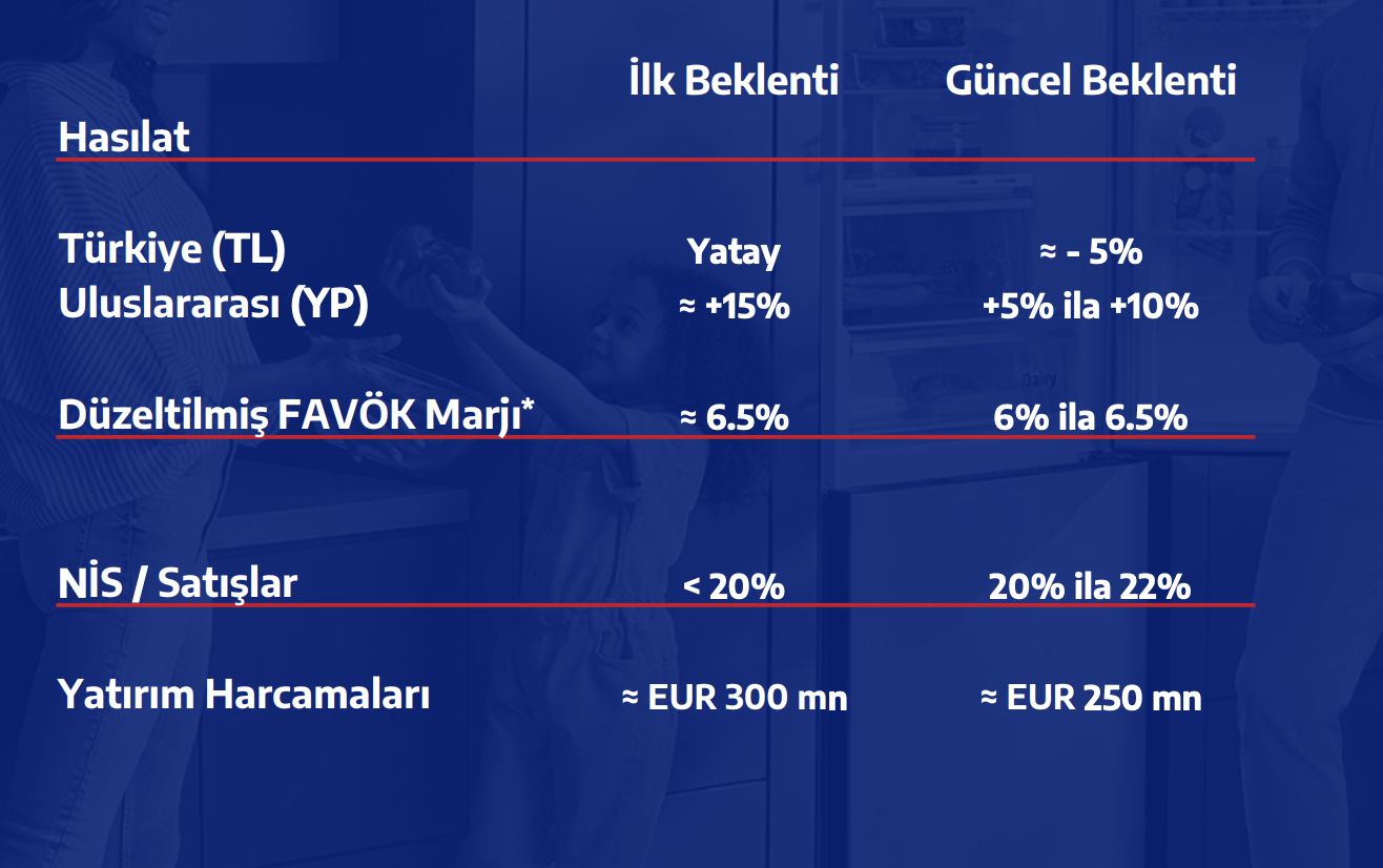 Avrupa’da talep toparlanması kademeli sürse de Fransa, Almanya ve Avusturya zayıf kaldı. Asya-Pasifik bölgesinde satış gelirleri %9 düşerken, Pakistan’daki sel felaketleri Dawlance satışlarını ciddi biçimde etkiledi. Orta Doğu pazarındaki yavaşlama gelirleri azaltırken, Defy’nin hacim artışı fiyat baskıları nedeniyle gelire yansımadı. Maliyet tarafında, metal ve plastik hammadde fiyatlarındaki düşüş eğilimi FAVÖK marjını desteklemeye devam etti. Makro belirsizlikler nedeniyle 2025 beklentilerini aşağı yönlü revize eden Arçelik, Türkiye hasılatında yaklaşık %5 daralma, uluslararası hasılatta %5–10 büyüme ve %6–6,5 bandında FAVÖK marjı öngörüyor. Net işletme sermayesinin satışlara oranının %20–22 aralığında, yatırım harcamalarının ise 250 milyon euro civarında gerçekleşmesi hedefleniyor.