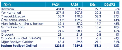 Operasyonel tarafta büyüme ivmesi korundu. Yolcu trafiği yıllık bazda %5 artarak 87,4 milyon yolcuya ulaştı; Antalya’daki yeni dış hatlar terminali, Ankara’daki yeni imtiyaz dönemi ve BTA ile Havaş operasyonlarındaki canlılık FAVÖK performansını destekledi. Şirketin FAVÖK marjı %33,6’ya yükselirken, güçlü faaliyet kaldıracı etkisi nakit akışına da yansıdı. Yoğun yatırım programına rağmen net borç 1,78 milyar eurodan 1,64 milyar euroya gerilerken, borçların %66’sının sabit faizli swaplarla korunması bilanço yönetiminde istikrar sağladı. Şirket, 2025 yılı için 1,75–1,85 milyar euro ciro, 520–590 milyon euro FAVÖK ve Net Borç/FAVÖK oranını 2,5–3,0 aralığında tutma hedefini koruyor.