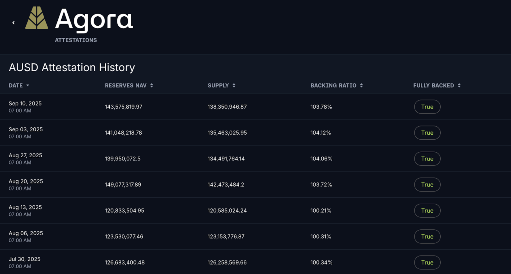 • Proof of Reserves Entegrasyonu: Mayıs 2025’te Agora, Chaos Labs iş birliğiyle Rezerv Kanıtı (PoR) sistemini devreye aldı. Bu entegrasyon sayesinde AUSD’nin arkasındaki varlıklar (nakit, ABD Hazine tahvilleri, stabilcoin’ler) düzenli olarak zincir üstünde doğrulanabiliyor. Buradan takip edebilirsiniz.
