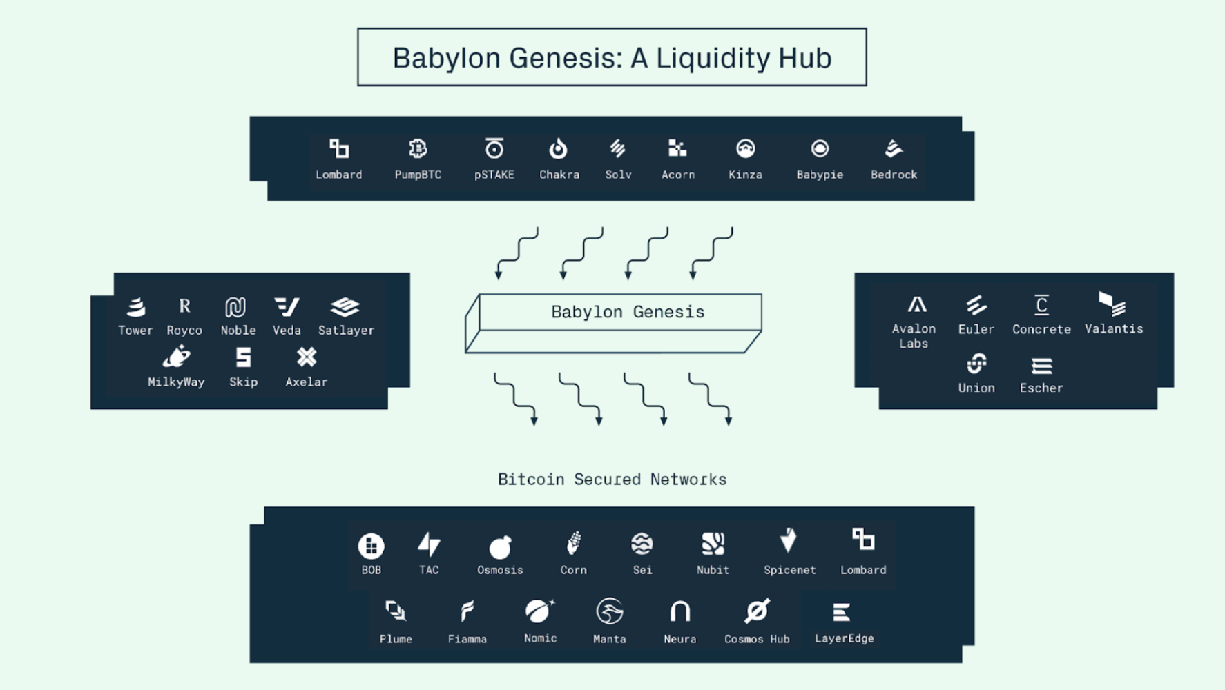 4. Babylon Genesis (kontrol düzlemi + likidite merkezi): Orkestra şefimiz olan Genesis, Babylon ekibi tarafından geliştirilmiş olan “ilk BSN” ağı. Aynı zamanda da bir kontrol düzlemi. Diğer BSN’ler için BTC staking / timestamping bilgisini senkronize eder, finalite imzaları için altyapı ve veri erişimi sağlar; bunun karşılığında protokol geliri yaratır ve kurallara göre staker’lara, doğrulayıcılara ve FP’lere dağıtır. Ayrıca likidite hub’ı olarak DEX, restaking, vault, LST basımı gibi uygulamaları üzerinde toplar.