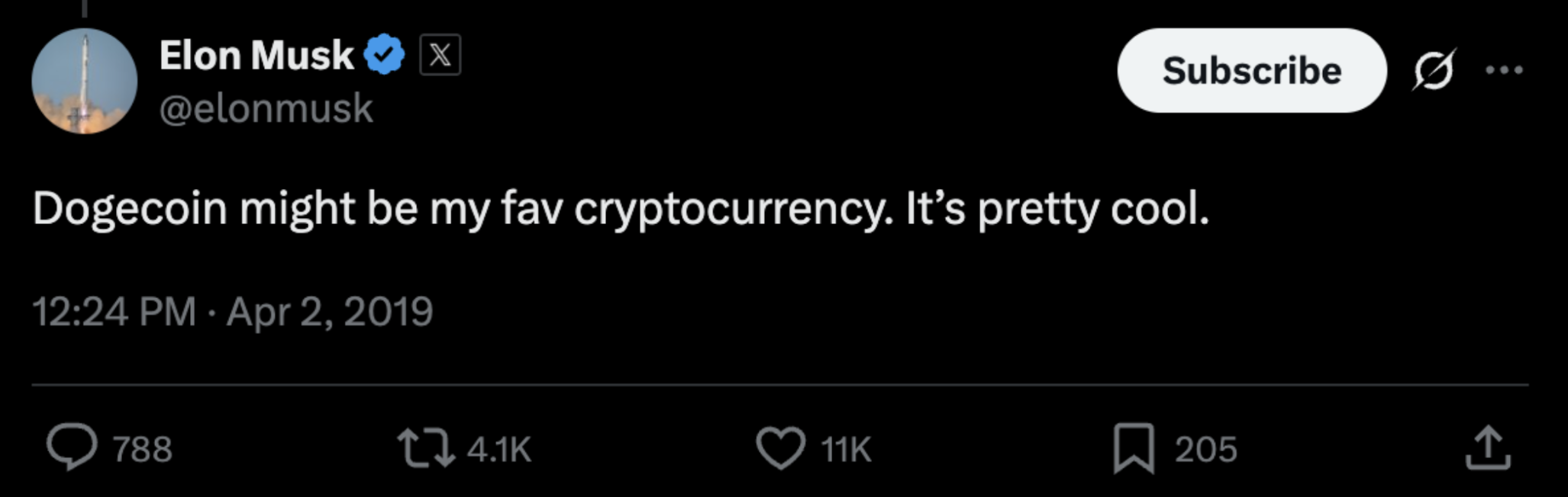 - 2019’dan itibaren Musk, Twitter (X) üzerinden Dogecoin hakkında esprili paylaşımlar yapmaya başladı. Kendini “Dogefather” olarak tanımlaması, Dogecoin topluluğu için dönüm noktalarından biri oldu.